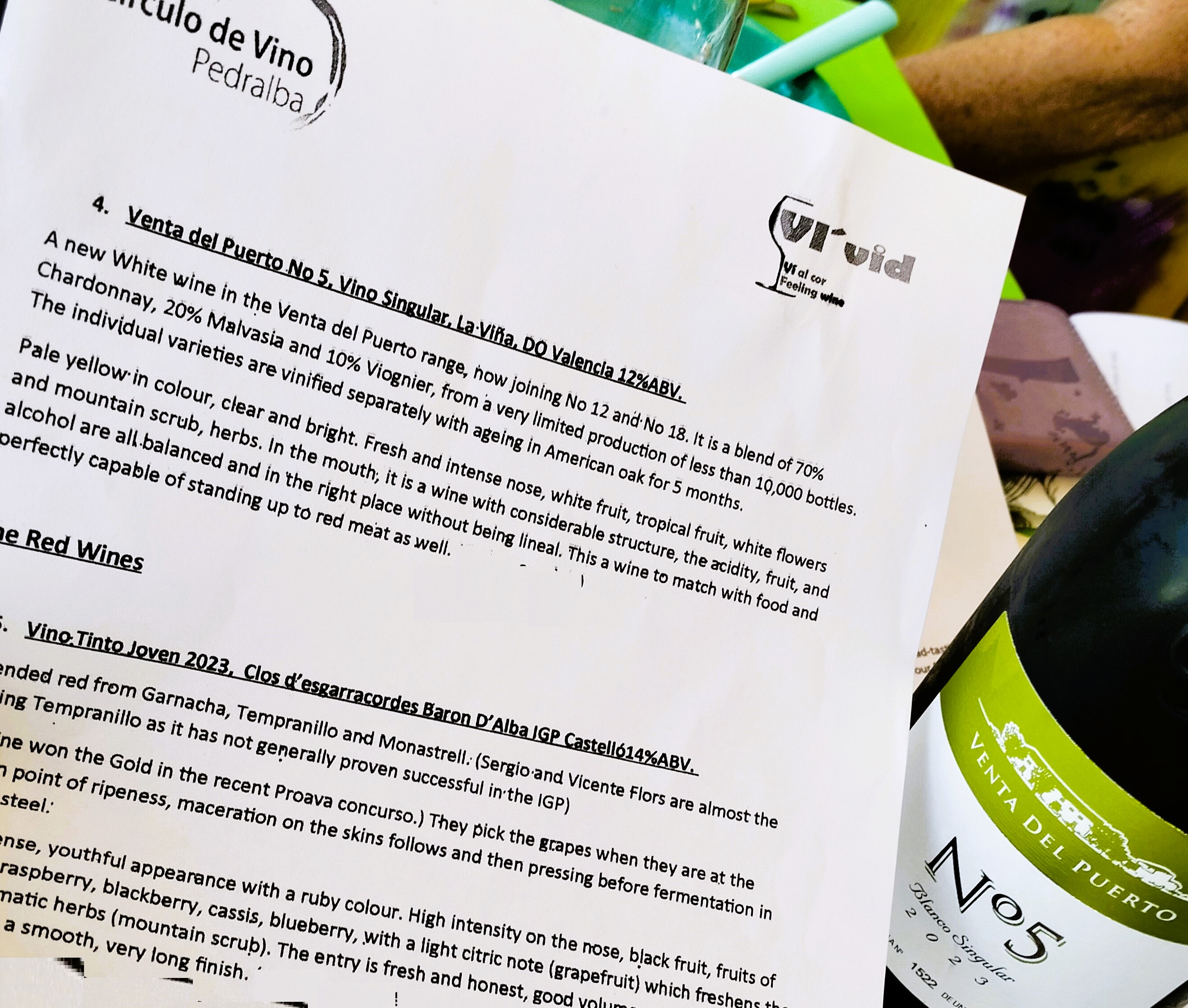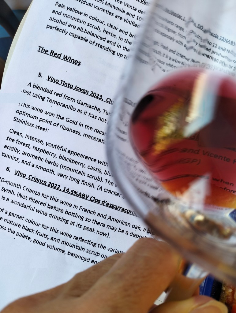For this tasting we had requested wines from bodegas in IGP Castellon (Clos d’esgarracordes, Barón D’Alba https://www.barondalba.com/) and DO Valencia (La Viña-Venta del Puerto https://www.ventadelpuerto.com/).